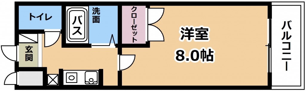 単身者さんや学生さんにオススメの1K・南西向きのお部屋です♪