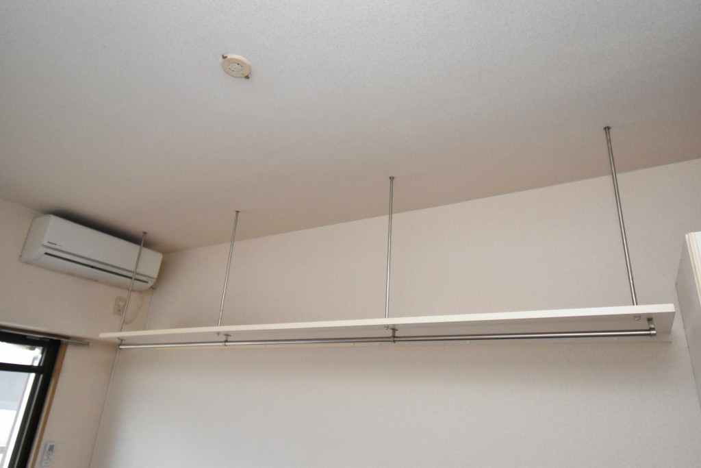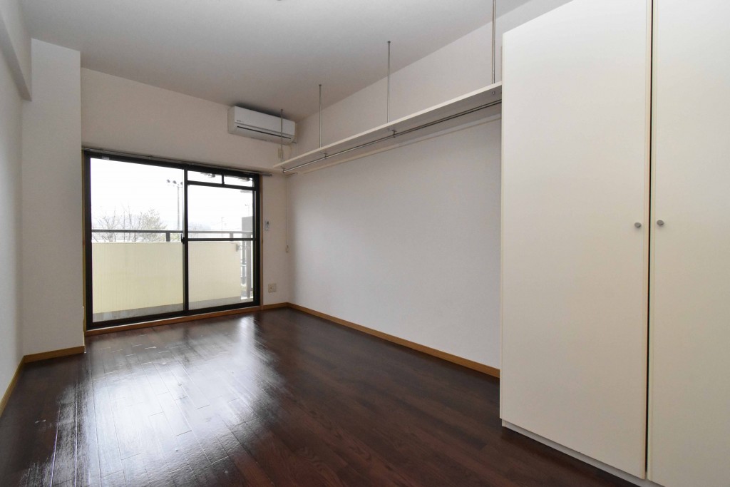 洋室にはクローゼットと吊り棚が備わっていて、収納スペースが確保されています☆
