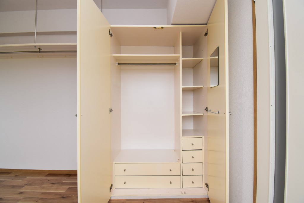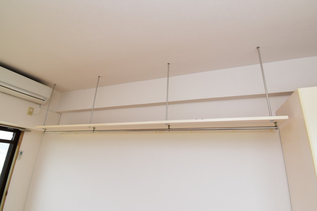 洋室にはクローゼットと吊り棚が備わっていて、収納スペースが確保されています☆