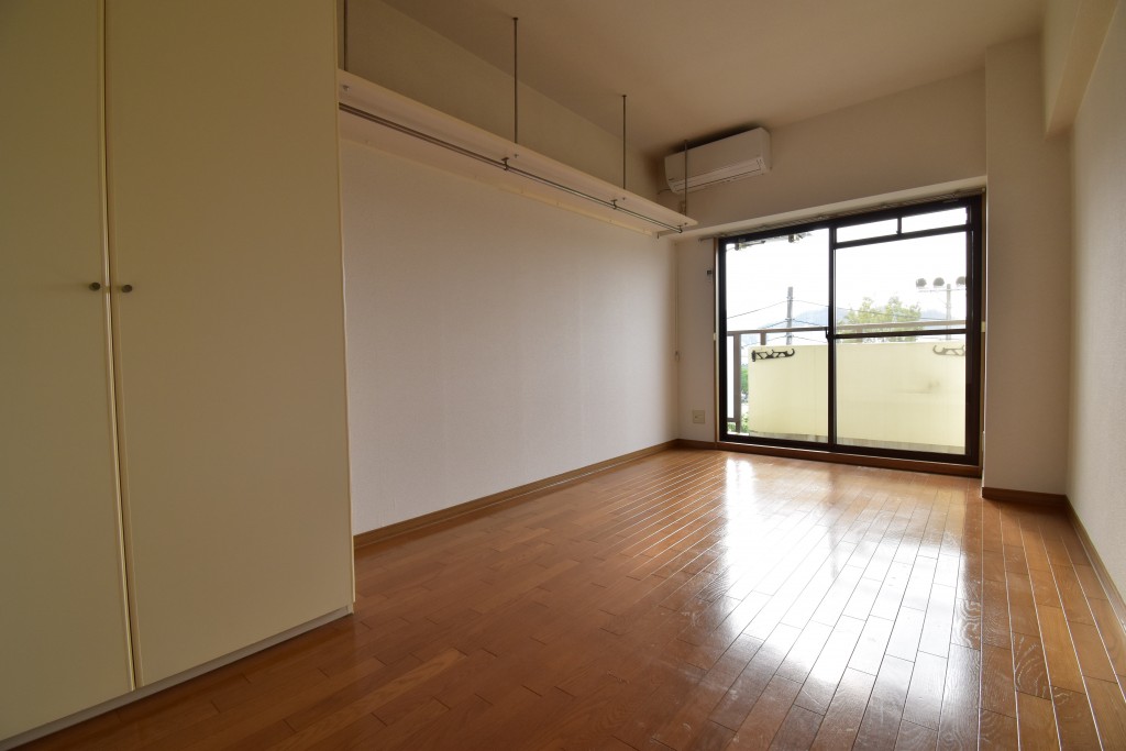 洋室にはクローゼットと吊り棚が備わっていて、収納スペースが確保されています☆