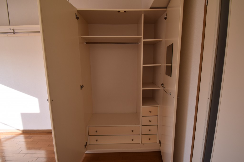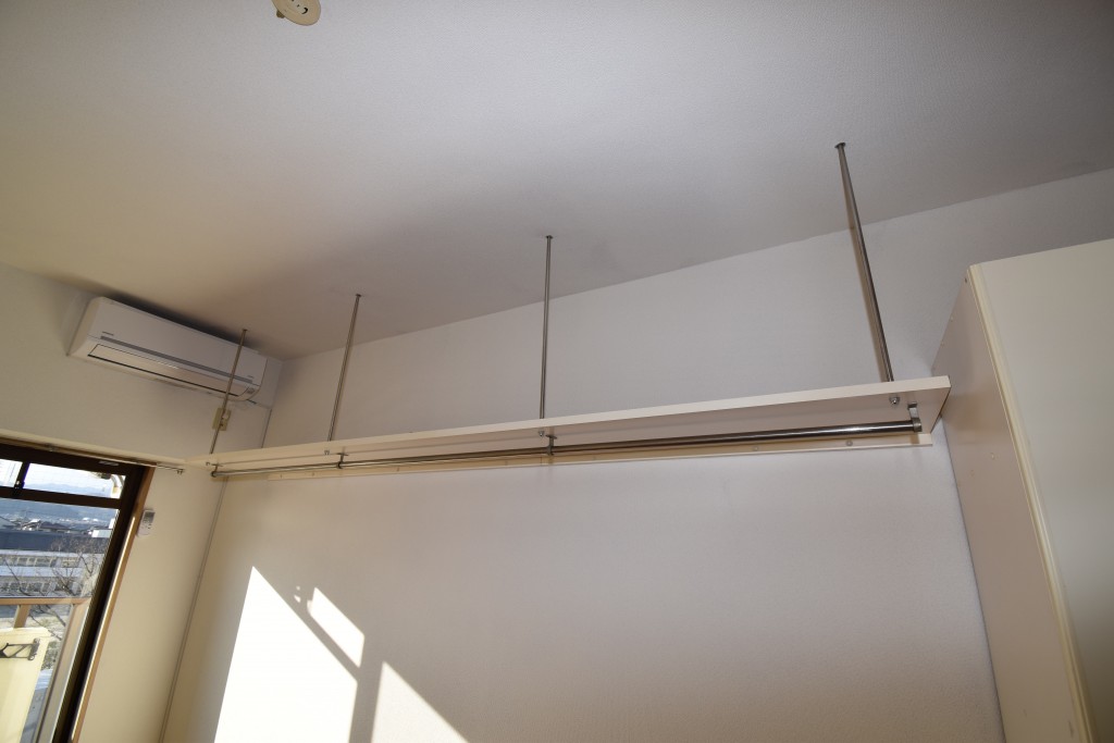 洋室にはクローゼットと吊り棚が備わっていて、収納スペースが確保されています☆