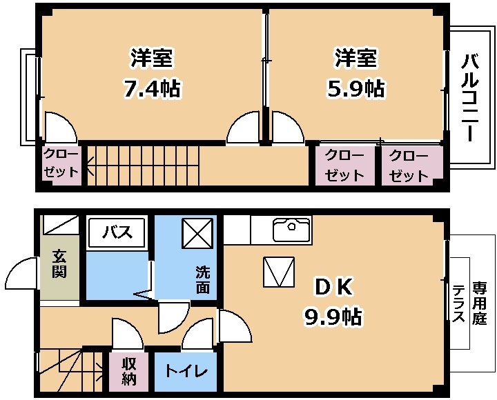 - 1階は専用庭、2階はバルコニー付きの2DKのお部屋です☆