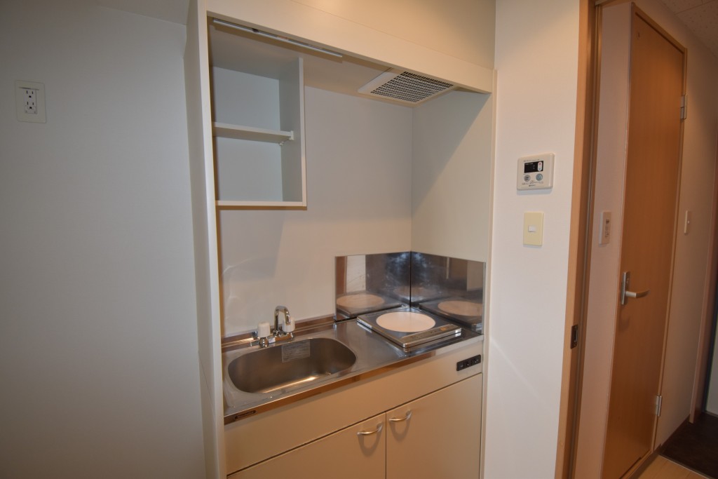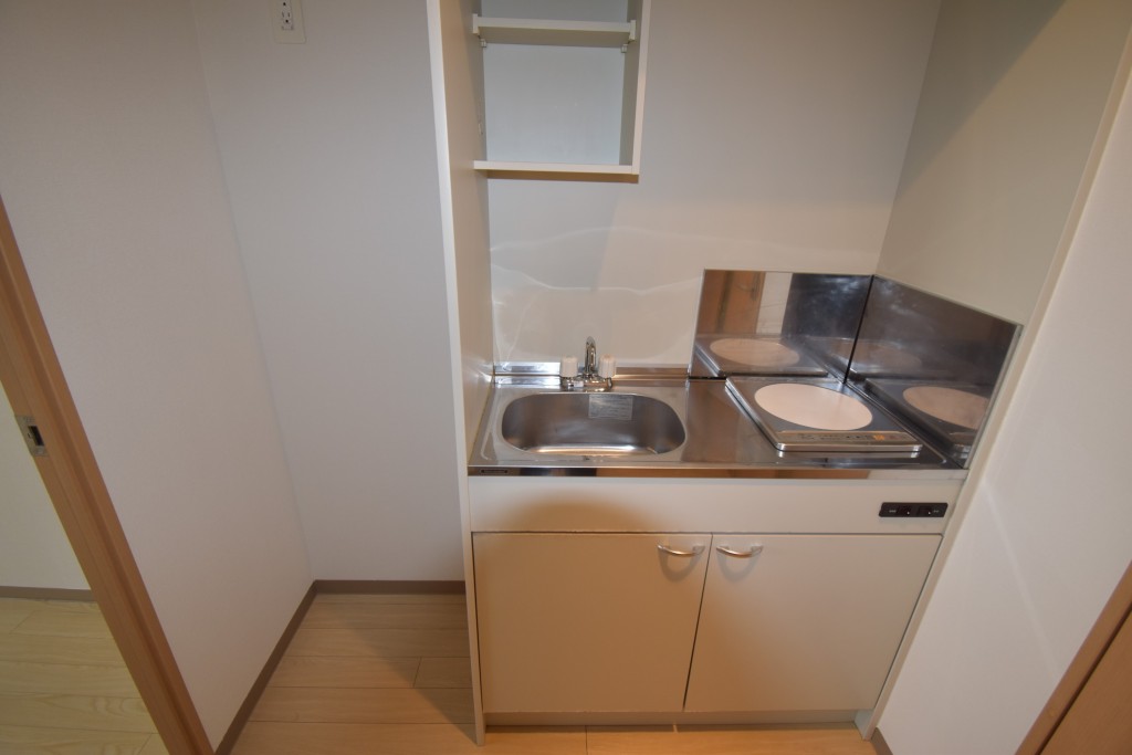 8.2帖の洋室にはエアコンやクローゼット、吊り棚付!キッチンにはお手入れが簡単な1口IHヒーターが備わっています☆