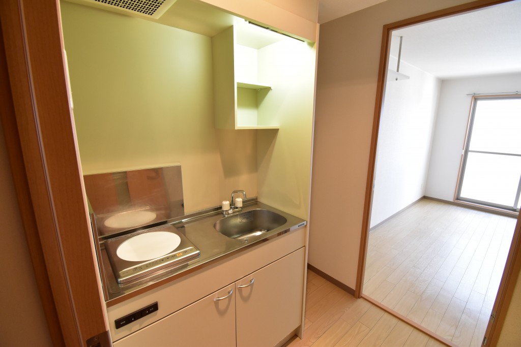 キッチンにはお手入れが簡単な1口IHヒーターが備わっています☆